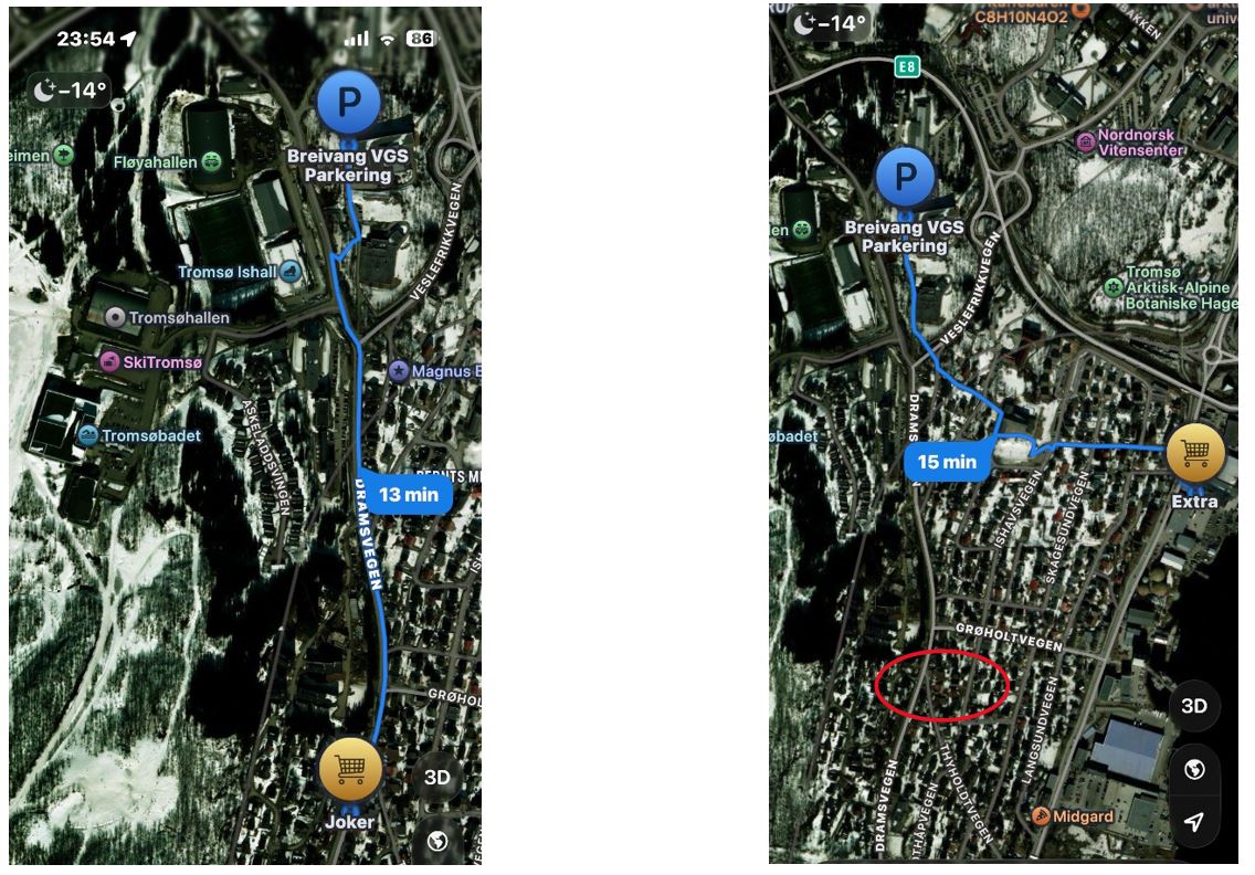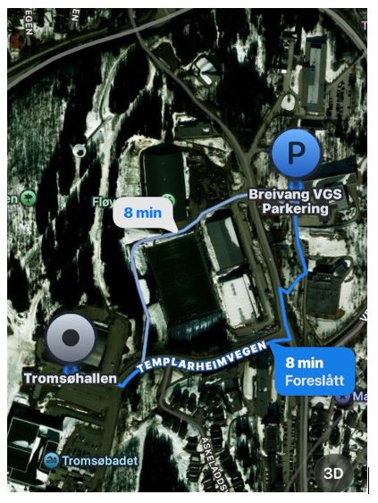 Tromsøhallen ligger 600 meter fra overnattingsstedet Breivang VGS.